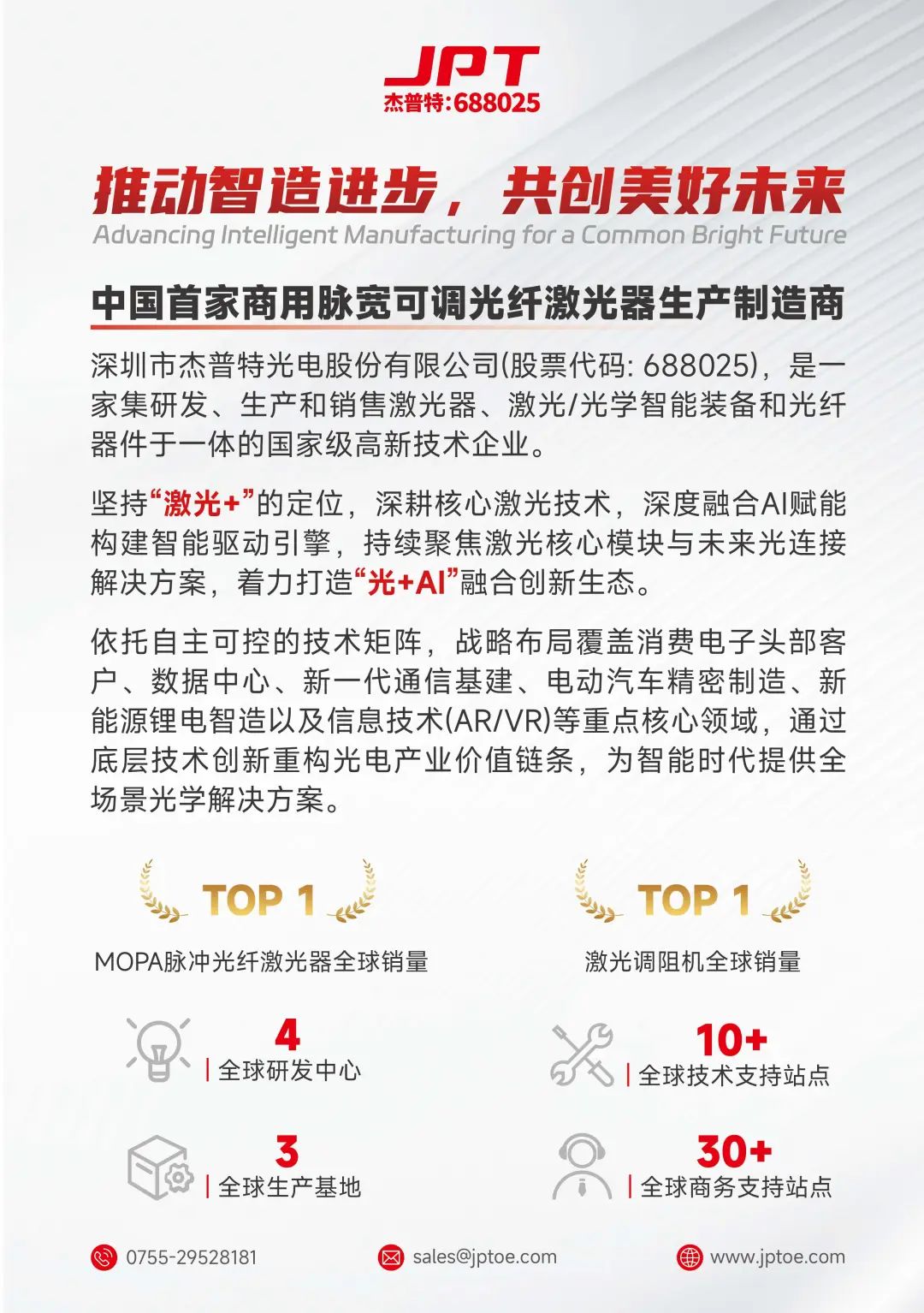深圳市qg刮刮乐官网光电股份有限公司(代码:688025)是国家级高新技术企业,并已成为全球MOPA脉冲光纤激光器销量领先者。公司始终致力于激光核心技术的自主研发与突破,并通过 “激光+AI” 的深度融合,为消费电子、新能源、半导体、医疗器械及科研等领域提供创新的全场景光学解决方案。